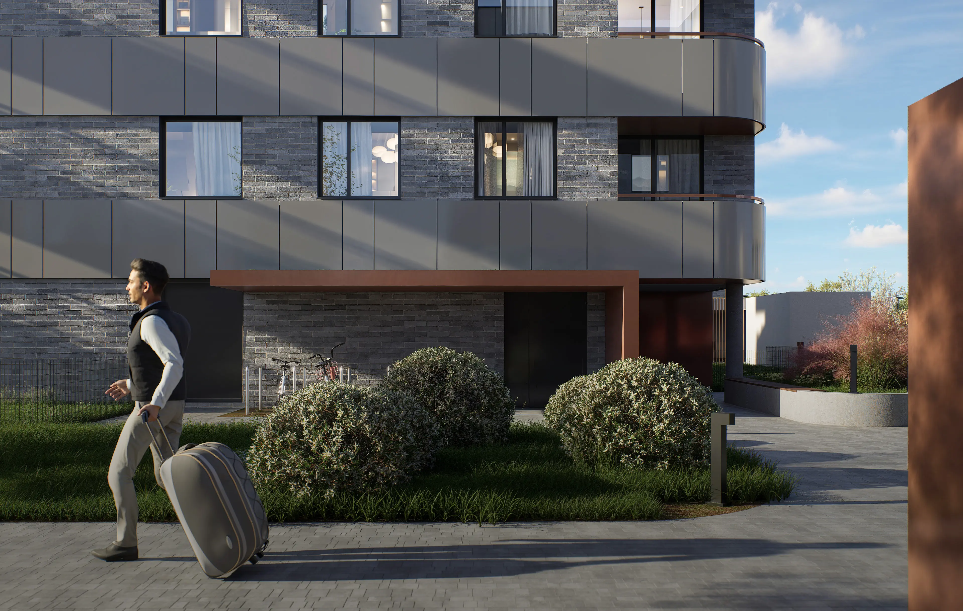 Zrezygnowaliśmy z monumentalności na rzecz kameralności. Trzypiętrowe budynki o niskiej zabudowie tworzą intymną atmosferę, która nie przytłacza, lecz zaprasza do odpoczynku.