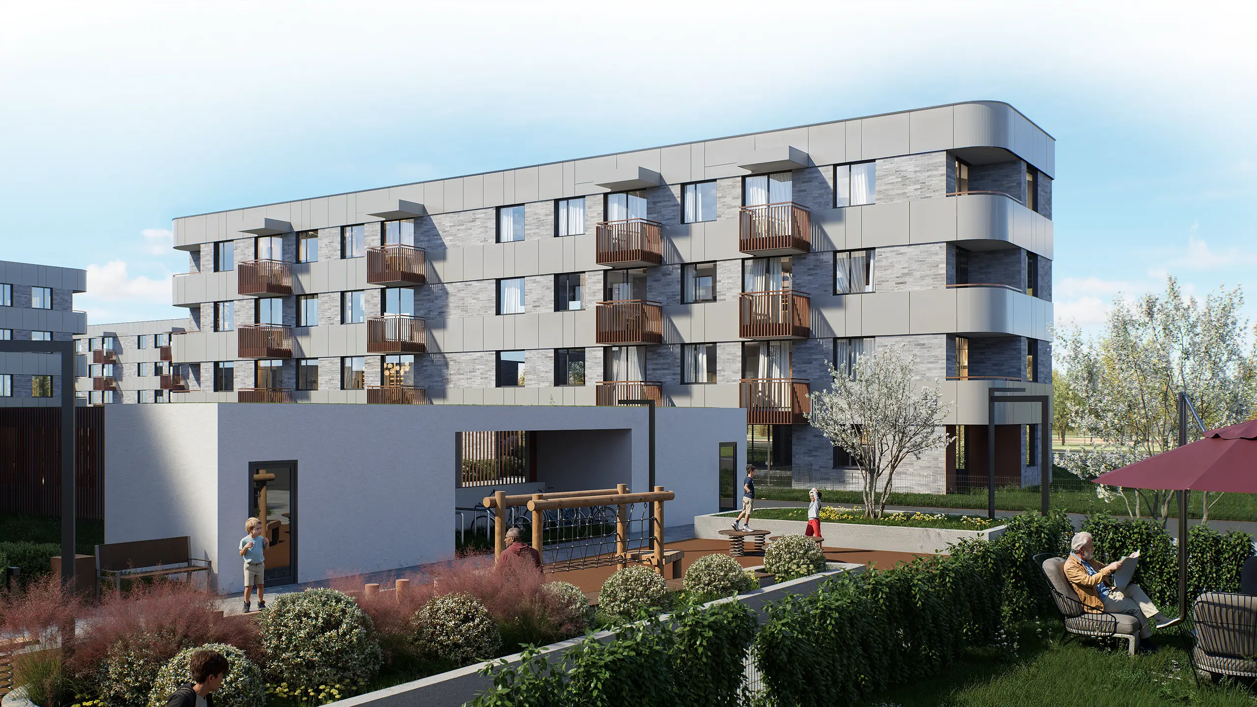W pobliżu w przyszłości powstaną sklepy, szkoła, przedszkole oraz placówka medyczna. To przestrzeń zaprojektowana dla rodzin, które szukają harmonii, bezpieczeństwa i oddechu wśród zieleni.